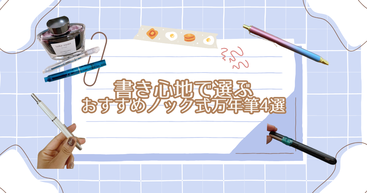 そこで、この記事ではノック式万年筆にハマって散財しまくった筆者の体験談を通して、書き心地や各製品のおすすめポイント、どんな人に向いているかをまとめました。